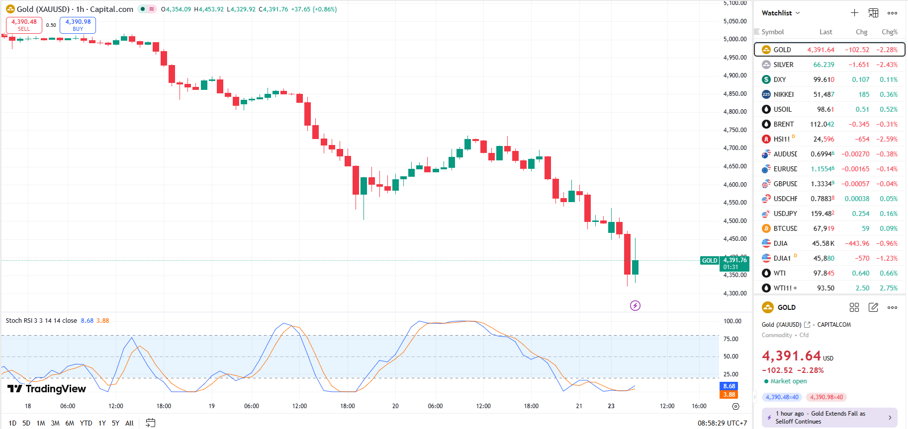 Adding to the downward pressure on the non-yielding metal, the Federal Reserve kept its key interest rate unchanged, as expected, while warning of rising risks tied to both inflation and unemployment—reinforcing its cautious stance on future policy moves.