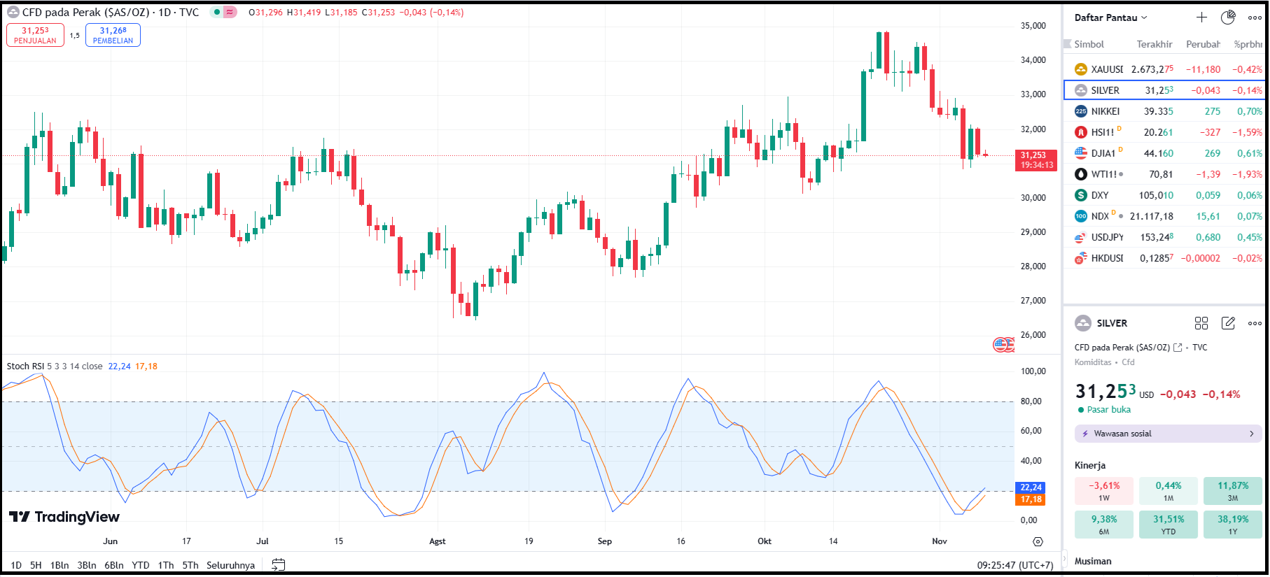 Saat Berita ini di rilis harga Perak berada di level $31.253
