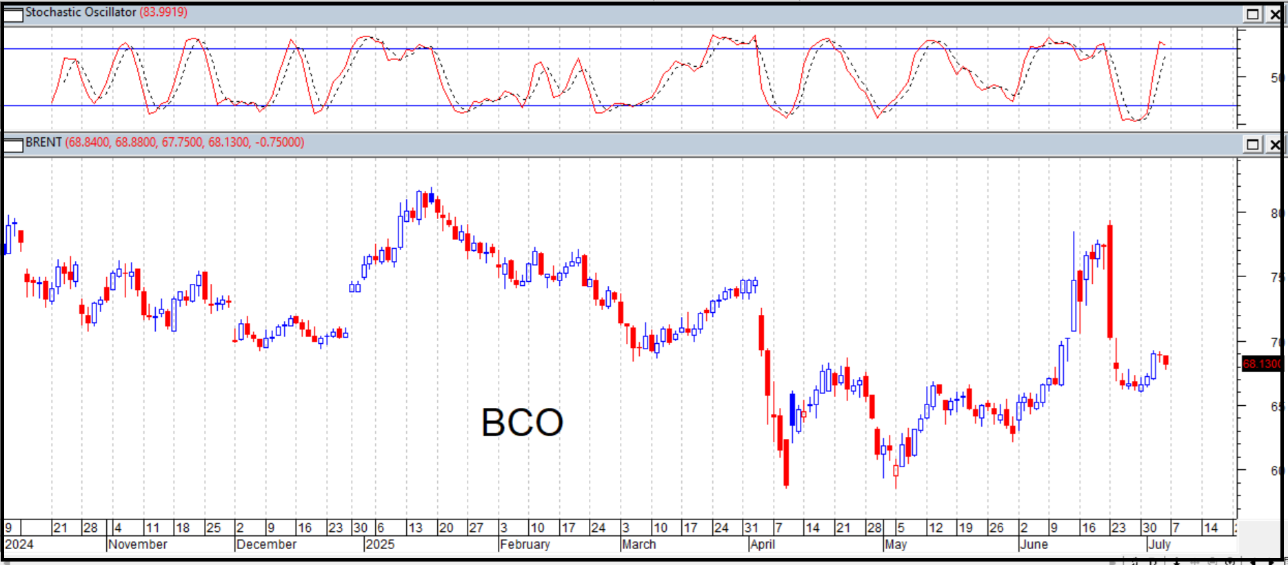 Penguatan yang terjadi di tanggal 2 Juli ke $ 69.21 tidak mampu berlanjut dihari perdagangan berikutnya dan justru diahir perdagangan mingguan masih “dipaksa” tutup diarea negative. Untuk pekan ini ada potensi pergerakan BCO akan bergerak membentuk pola side ways.